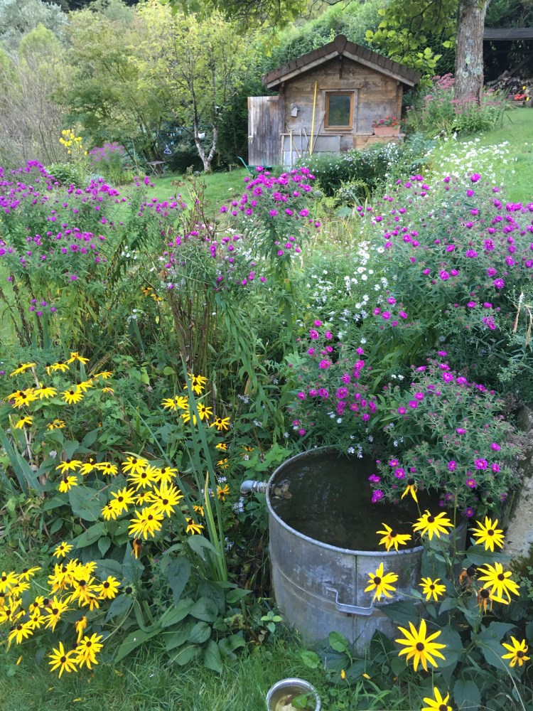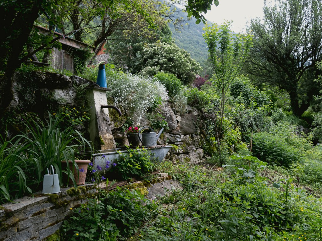 Un jardin champêtre, animé par une basse-cour, des chèvres et des abeilles, alimenté par une source…